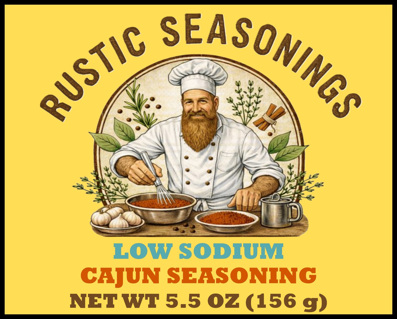 A low sodium Cajun-style seasoning blend crafted for bold flavor without relying on excess salt.